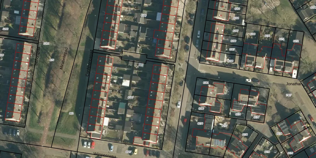 Het perceel waarop Notarisappel 40 staat heeft een oppervlakte van 2870 m². Dit is een zeer groot perceel. De perceeloppervlakte wordt geregistreerd door het Kadaster. Gedetailleerde informatie over de maten van dit perceel kunt u vinden in het rapport Kadastrale kaart met maatvoering van Notarisappel 40.