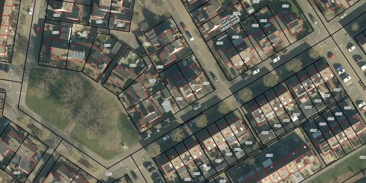 Het perceel waarop Notarisappel 57 staat heeft een oppervlakte van 259 m². Dit is een middelgroot perceel. De perceeloppervlakte wordt geregistreerd door het Kadaster. Gedetailleerde informatie over de maten van dit perceel kunt u vinden in het rapport Kadastrale kaart met maatvoering van Notarisappel 57.