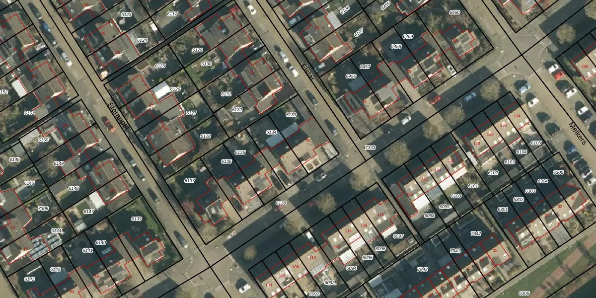Het adres is gelegen op perceel 6133 in de sectie D en de kadastrale gemeente Tiel. De kadastrale aanduiding is aldus TIE00-D-6133. Het perceel is kleiner dan gemiddeld in Tiel. Het perceel is 299 m² groot, terwijl het gemiddelde ligt op 1546,95 m². De grootste perceeloppervlakte in de kadastrale gemeente is 26,3 ha. De kleinste oppervlakte bedraagt 0 m². Dit is het enige adres dat aanwezig is op het perceel. In de Basisregistratie Kadaster (BRK) werden de grenzen van het perceel geregistreerd op 19-11-2002.