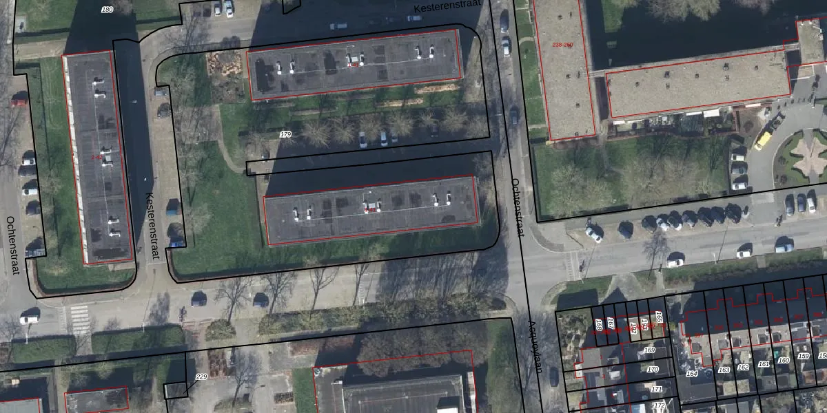 Het perceel waarop Ochtenstraat 27 staat heeft een oppervlakte van 3965 m². Dit is een zeer groot perceel. De perceeloppervlakte wordt geregistreerd door het Kadaster. Gedetailleerde informatie over de maten van dit perceel kunt u vinden in het rapport Kadastrale kaart met maatvoering van Ochtenstraat 27.