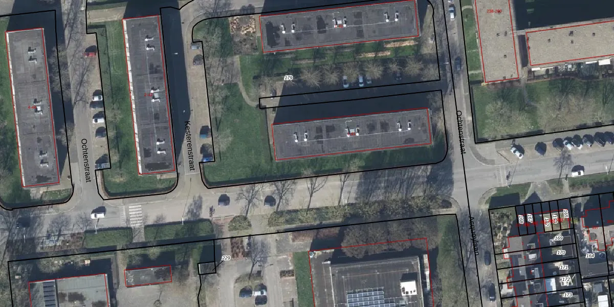 Het perceel waarop Ochtenstraat 39 staat heeft een oppervlakte van 3965 m². Dit is een zeer groot perceel. De perceeloppervlakte wordt geregistreerd door het Kadaster. Gedetailleerde informatie over de maten van dit perceel kunt u vinden in het rapport Kadastrale kaart met maatvoering van Ochtenstraat 39.