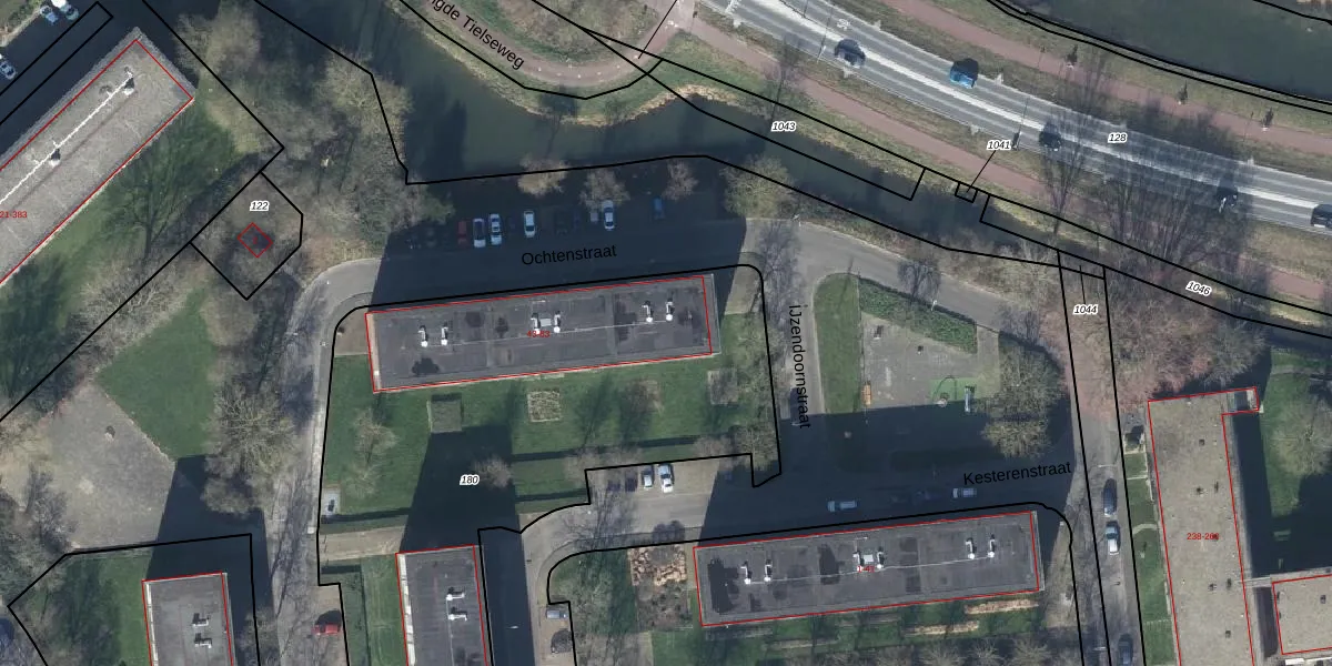 Het adres is gelegen op perceel 180 in de sectie M en de kadastrale gemeente Tiel. De kadastrale aanduiding is aldus TIE00-M-180. De gemiddelde perceeloppervlakte in de kadastrale gemeente Tiel is 1550,27 m². Dit perceel is met zijn 3530 m² dus groter dan gemiddeld. De grootste perceeloppervlakte in de kadastrale gemeente is 26,3 ha. De kleinste oppervlakte bedraagt 0 m². Er zijn 42 adressen aanwezig op het perceel. De huidige grenzen van het perceel zijn digitaal in de Basisregistratie Kadaster (BRK) geregistreerd op 06-04-2004.