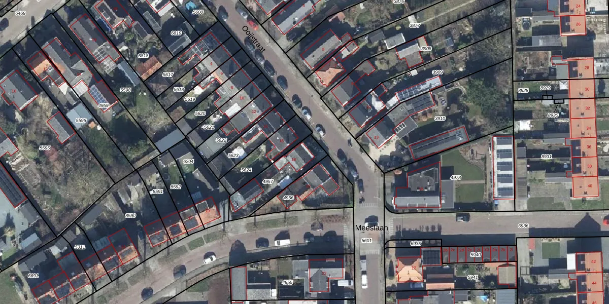 Gebruik de zoekbalk of klik op een perceel voor informatie over de adressen binnen dit perceel.