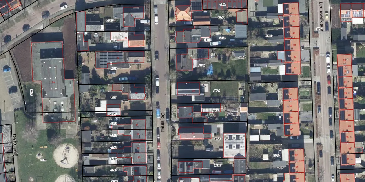 Gebruik de zoekbalk of klik op een perceel voor informatie over de adressen binnen dit perceel.