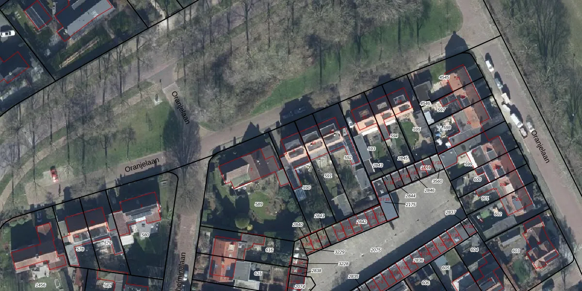 Oranjelaan 9 is gelegen op kadastraal perceel TIE00H590. Deze kadastrale aanduiding is uniek en wordt gebruikt door het Kadaster om eigendomsrechten en andere zakelijke rechten vast te leggen. Het perceel maakt onderdeel uit van de kadastrale gemeente Tiel.