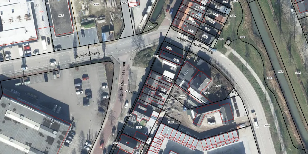 Het perceel waarop Oude Medelsestraat 56 staat heeft een oppervlakte van 87 m². Dit is een klein perceel. De perceeloppervlakte wordt geregistreerd door het Kadaster. Gedetailleerde informatie over de maten van dit perceel kunt u vinden in het rapport Kadastrale kaart met maatvoering van Oude Medelsestraat 56.