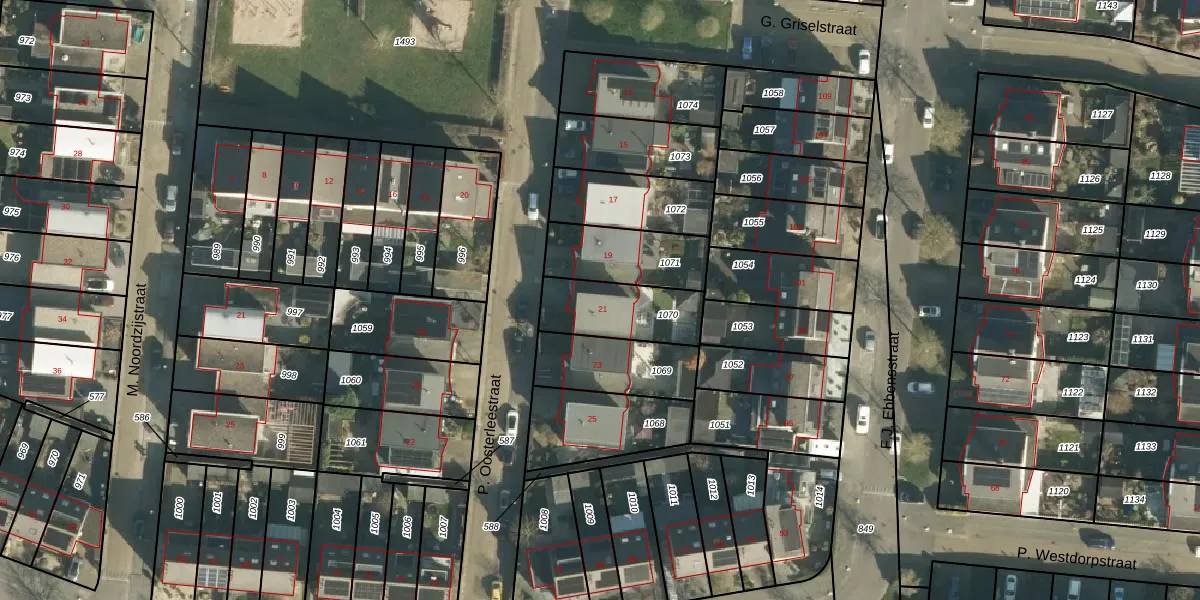 P. Oosterleestraat 21 is gelegen op kadastraal perceel TIE00K1070. Deze kadastrale aanduiding is uniek en wordt gebruikt door het Kadaster om eigendomsrechten en andere zakelijke rechten vast te leggen. Het perceel maakt onderdeel uit van de kadastrale gemeente Tiel.