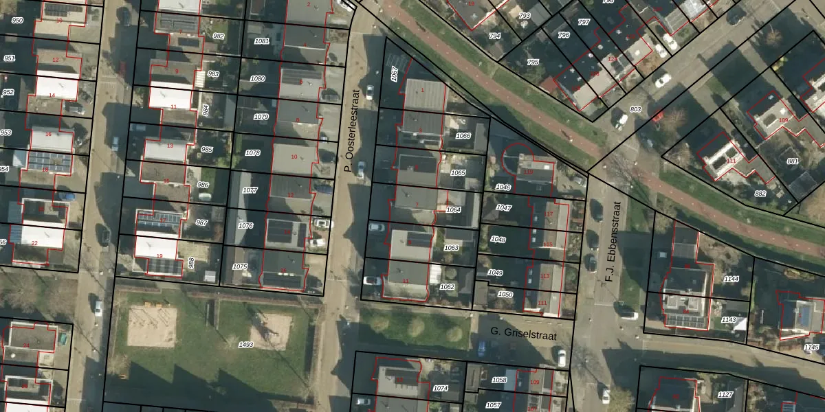 P. Oosterleestraat 7 is gelegen op kadastraal perceel TIE00K1064. Deze kadastrale aanduiding is uniek en wordt gebruikt door het Kadaster om eigendomsrechten en andere zakelijke rechten vast te leggen. Het perceel maakt onderdeel uit van de kadastrale gemeente Tiel.