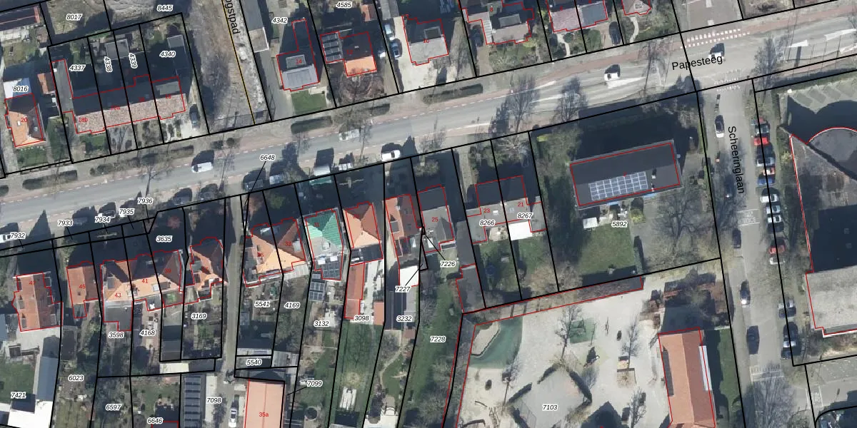 Papesteeg 25 is gelegen op kadastraal perceel TIE00D7228. Deze kadastrale aanduiding is uniek en wordt gebruikt door het Kadaster om eigendomsrechten en andere zakelijke rechten vast te leggen. Het perceel maakt onderdeel uit van de kadastrale gemeente Tiel.