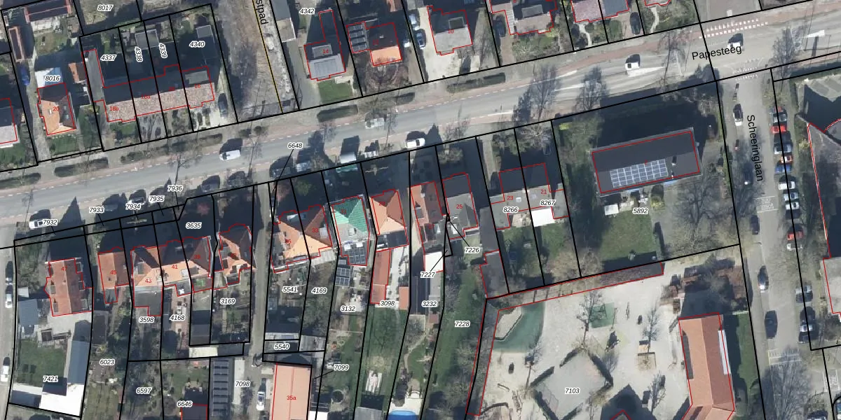 Gebruik de zoekbalk of klik op een perceel voor informatie over de adressen binnen dit perceel.