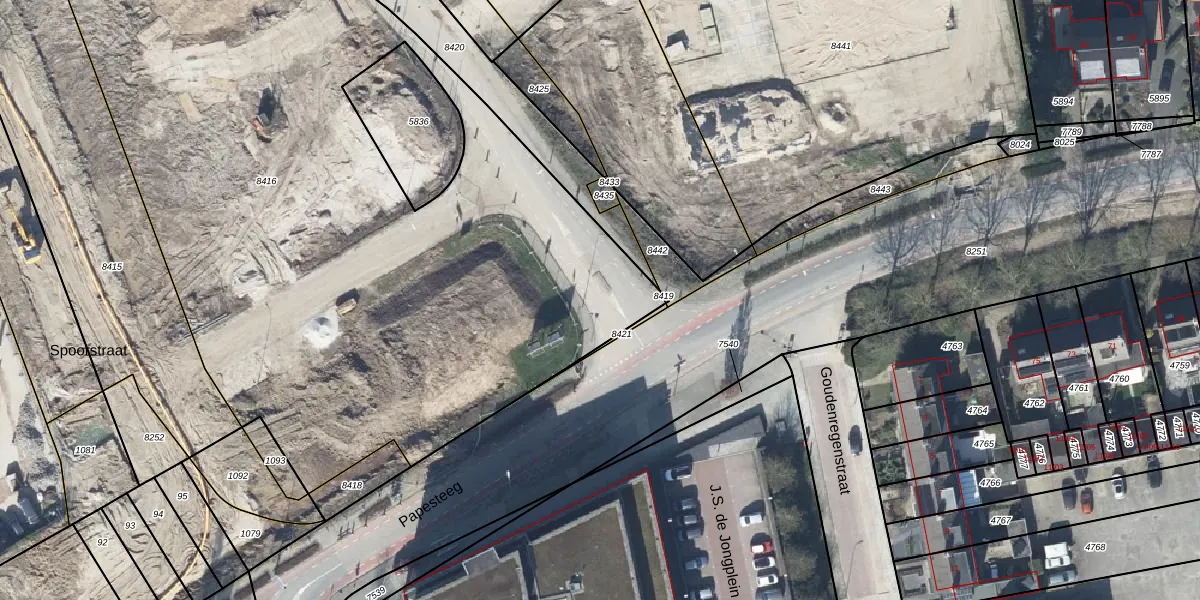 Het perceel waarop Papesteeg 48 staat heeft een oppervlakte van 5213 m². Dit is een zeer groot perceel. De perceeloppervlakte wordt geregistreerd door het Kadaster. Gedetailleerde informatie over de maten van dit perceel kunt u vinden in het rapport Kadastrale kaart met maatvoering van Papesteeg 48.