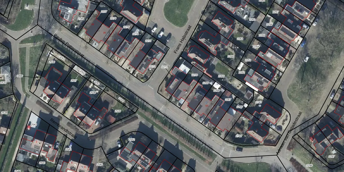Paulus Potterstraat 16 is gelegen op kadastraal perceel TIE00H2271. Deze kadastrale aanduiding is uniek en wordt gebruikt door het Kadaster om eigendomsrechten en andere zakelijke rechten vast te leggen. Het perceel maakt onderdeel uit van de kadastrale gemeente Tiel.