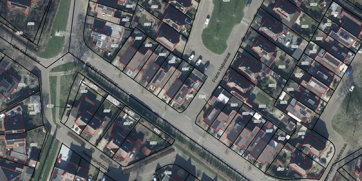 Paulus Potterstraat 18 is gelegen op kadastraal perceel TIE00H2272. Deze kadastrale aanduiding is uniek en wordt gebruikt door het Kadaster om eigendomsrechten en andere zakelijke rechten vast te leggen. Het perceel maakt onderdeel uit van de kadastrale gemeente Tiel.