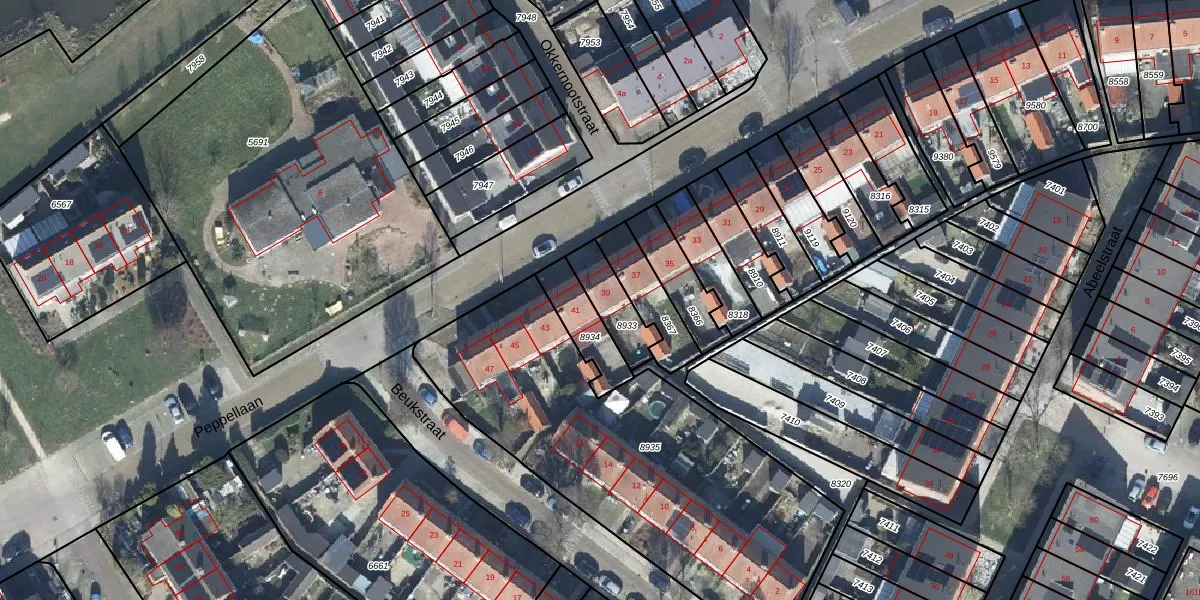 Gebruik de zoekbalk of klik op een perceel voor informatie over de adressen binnen dit perceel.