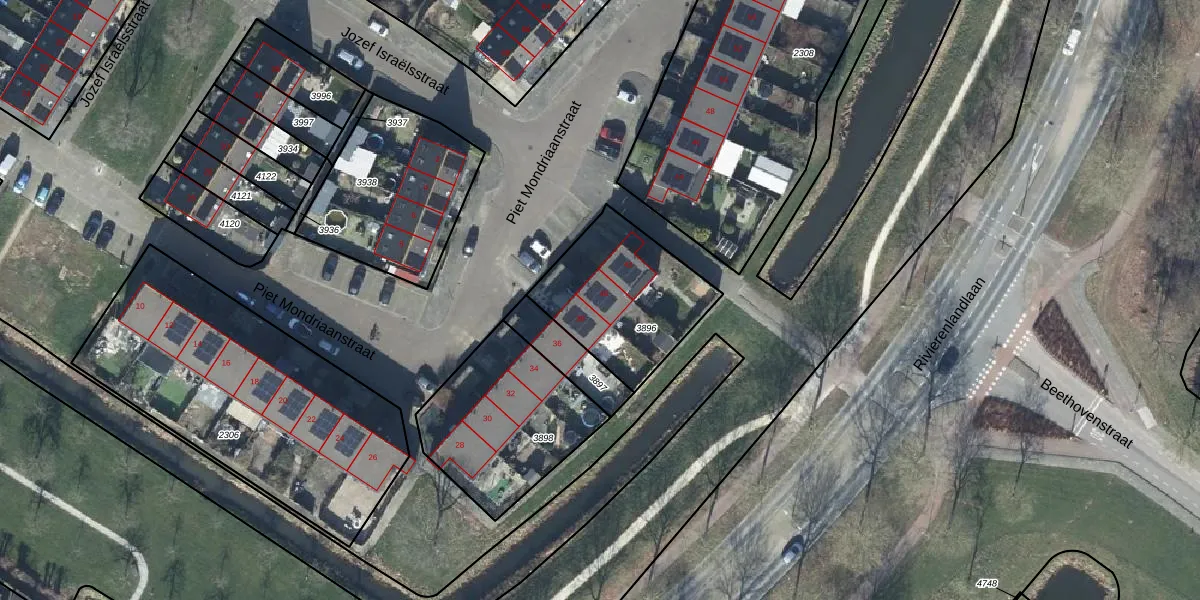 Piet Mondriaanstraat 40 is gelegen op kadastraal perceel TIE00H3896. Deze kadastrale aanduiding is uniek en wordt gebruikt door het Kadaster om eigendomsrechten en andere zakelijke rechten vast te leggen. Het perceel maakt onderdeel uit van de kadastrale gemeente Tiel.