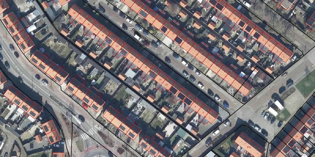 Plataanstraat 15 is gelegen op kadastraal perceel TIE00C6647. Deze kadastrale aanduiding is uniek en wordt gebruikt door het Kadaster om eigendomsrechten en andere zakelijke rechten vast te leggen. Het perceel maakt onderdeel uit van de kadastrale gemeente Tiel.