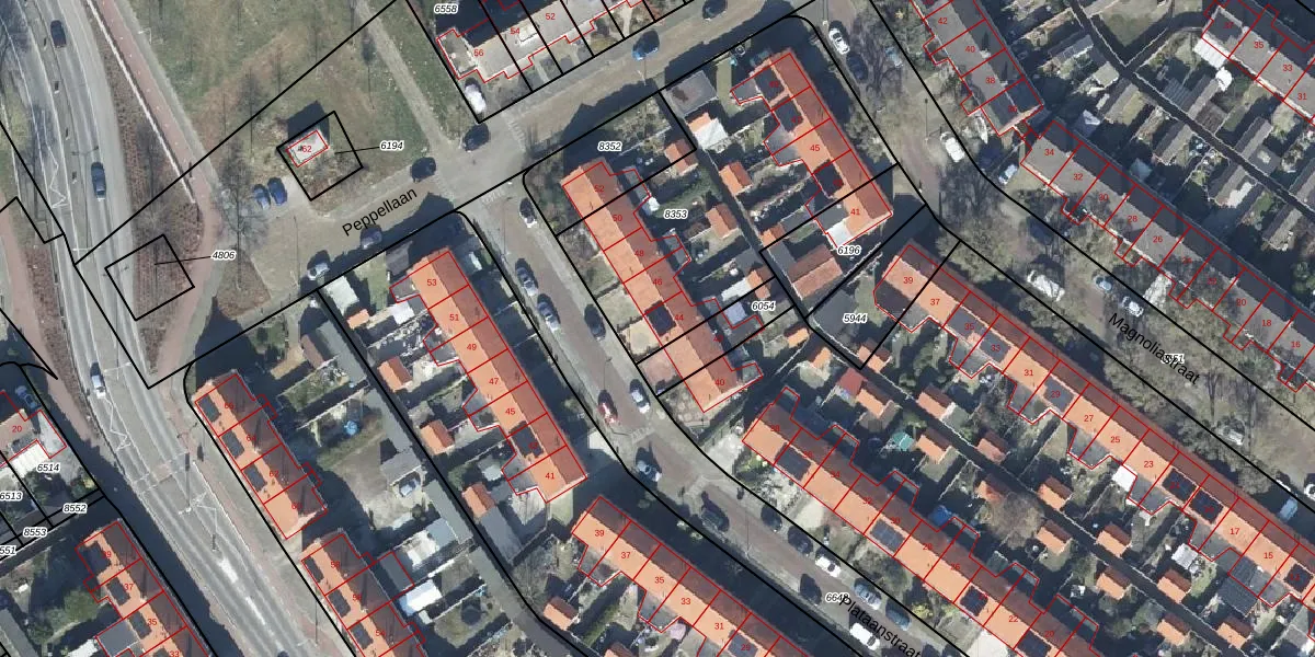 Plataanstraat 44 is gelegen op kadastraal perceel TIE00C8353. Deze kadastrale aanduiding is uniek en wordt gebruikt door het Kadaster om eigendomsrechten en andere zakelijke rechten vast te leggen. Het perceel maakt onderdeel uit van de kadastrale gemeente Tiel.