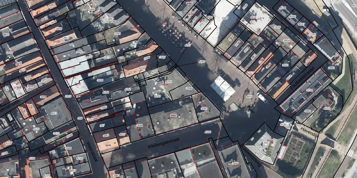 Plein 38-32 is gelegen op kadastraal perceel TIE00E3398. Deze kadastrale aanduiding is uniek en wordt gebruikt door het Kadaster om eigendomsrechten en andere zakelijke rechten vast te leggen. Het perceel maakt onderdeel uit van de kadastrale gemeente Tiel.