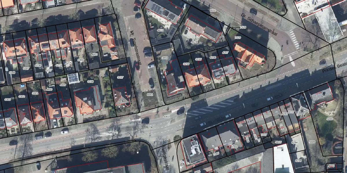 Prinses Beatrixlaan 16 is gelegen op kadastraal perceel TIE00D3859. Deze kadastrale aanduiding is uniek en wordt gebruikt door het Kadaster om eigendomsrechten en andere zakelijke rechten vast te leggen. Het perceel maakt onderdeel uit van de kadastrale gemeente Tiel.