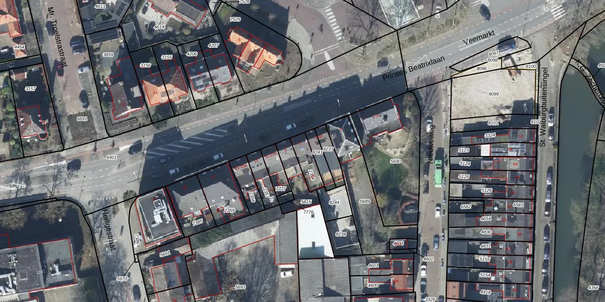 Prinses Beatrixlaan 7 is gelegen op kadastraal perceel TIE00D2354. Deze kadastrale aanduiding is uniek en wordt gebruikt door het Kadaster om eigendomsrechten en andere zakelijke rechten vast te leggen. Het perceel maakt onderdeel uit van de kadastrale gemeente Tiel.