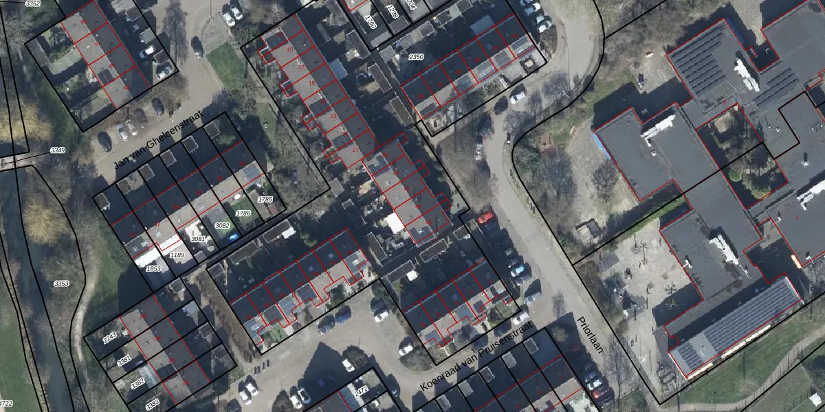 Het perceel waarop Priorlaan 44 staat heeft een oppervlakte van 4018 m². Dit is een zeer groot perceel. De perceeloppervlakte wordt geregistreerd door het Kadaster. Gedetailleerde informatie over de maten van dit perceel kunt u vinden in het rapport Kadastrale kaart met maatvoering van Priorlaan 44.