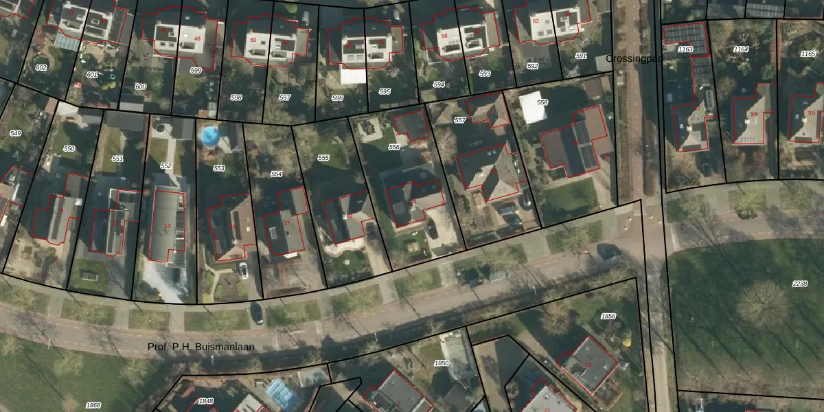 Prof. P.H. Buismanlaan 21 is gelegen op kadastraal perceel TIE00K556. Deze kadastrale aanduiding is uniek en wordt gebruikt door het Kadaster om eigendomsrechten en andere zakelijke rechten vast te leggen. Het perceel maakt onderdeel uit van de kadastrale gemeente Tiel.