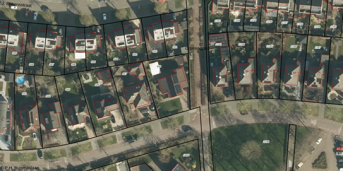 Prof. P.H. Buismanlaan 25 is gelegen op kadastraal perceel TIE00K558. Deze kadastrale aanduiding is uniek en wordt gebruikt door het Kadaster om eigendomsrechten en andere zakelijke rechten vast te leggen. Het perceel maakt onderdeel uit van de kadastrale gemeente Tiel.