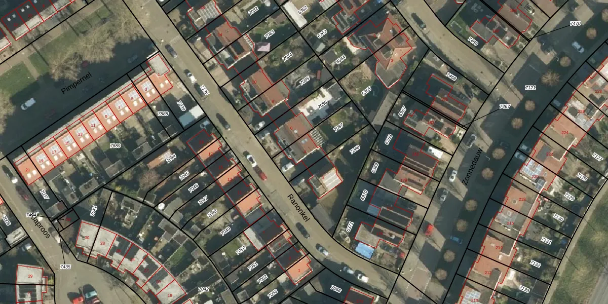 Ranonkel 4 is gelegen op kadastraal perceel TIE00D7087. Deze kadastrale aanduiding is uniek en wordt gebruikt door het Kadaster om eigendomsrechten en andere zakelijke rechten vast te leggen. Het perceel maakt onderdeel uit van de kadastrale gemeente Tiel.