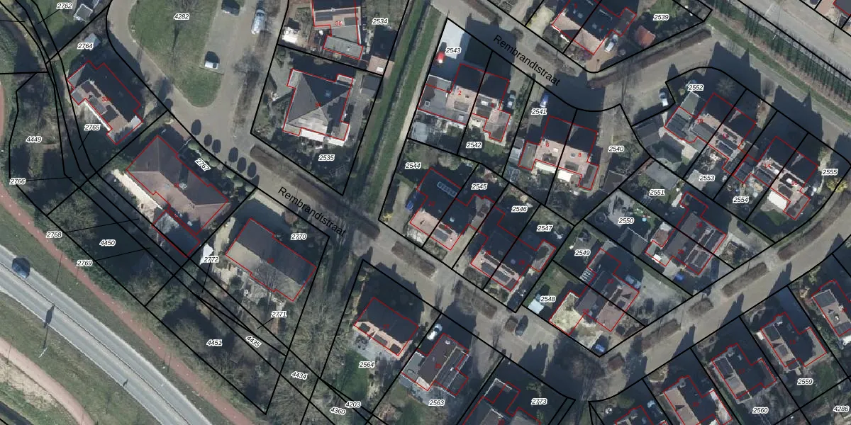 Het perceel waarop Rembrandtstraat 32 staat heeft een oppervlakte van 330 m². Dit is een groot perceel. De perceeloppervlakte wordt geregistreerd door het Kadaster. Gedetailleerde informatie over de maten van dit perceel kunt u vinden in het rapport Kadastrale kaart met maatvoering van Rembrandtstraat 32.