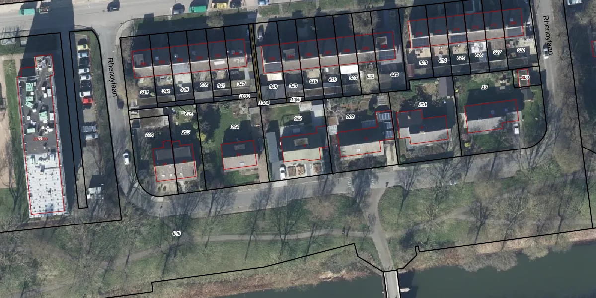 Rhenoylaan 8 is gelegen op kadastraal perceel TIE00M203. Deze kadastrale aanduiding is uniek en wordt gebruikt door het Kadaster om eigendomsrechten en andere zakelijke rechten vast te leggen. Het perceel maakt onderdeel uit van de kadastrale gemeente Tiel.