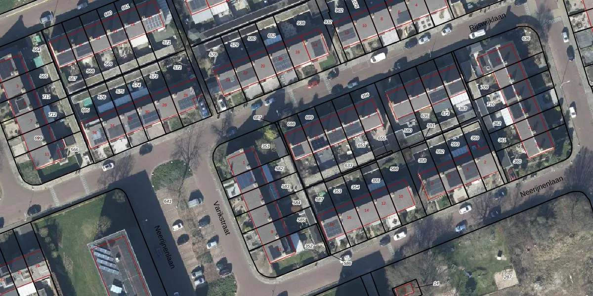 Gebruik de zoekbalk of klik op een perceel voor informatie over de adressen binnen dit perceel.