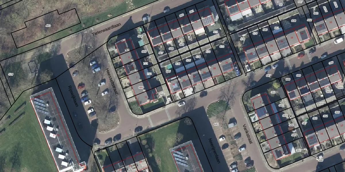 Rijswijklaan 36 is gelegen op kadastraal perceel TIE00M685. Deze kadastrale aanduiding is uniek en wordt gebruikt door het Kadaster om eigendomsrechten en andere zakelijke rechten vast te leggen. Het perceel maakt onderdeel uit van de kadastrale gemeente Tiel.