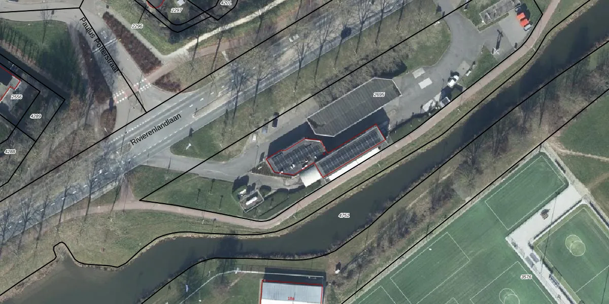 Het perceel waarop Rivierenlandlaan 4 staat heeft een oppervlakte van 3290 m². Dit is een zeer groot perceel. De perceeloppervlakte wordt geregistreerd door het Kadaster. Gedetailleerde informatie over de maten van dit perceel kunt u vinden in het rapport Kadastrale kaart met maatvoering van Rivierenlandlaan 4.