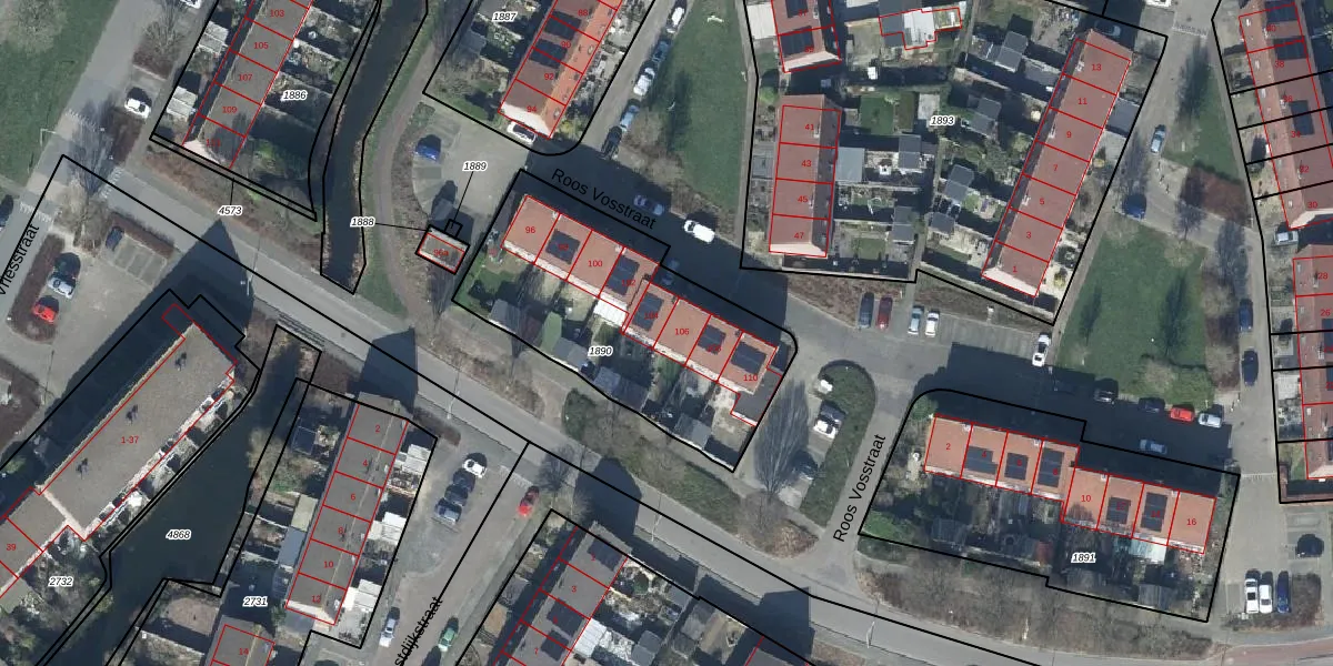 Roos Vosstraat 106 is gelegen op kadastraal perceel TIE00H1890. Deze kadastrale aanduiding is uniek en wordt gebruikt door het Kadaster om eigendomsrechten en andere zakelijke rechten vast te leggen. Het perceel maakt onderdeel uit van de kadastrale gemeente Tiel.
