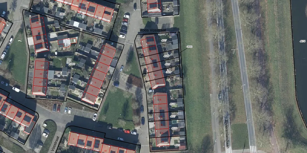 Roos Vosstraat 32 is gelegen op kadastraal perceel TIE00H3929. Deze kadastrale aanduiding is uniek en wordt gebruikt door het Kadaster om eigendomsrechten en andere zakelijke rechten vast te leggen. Het perceel maakt onderdeel uit van de kadastrale gemeente Tiel.