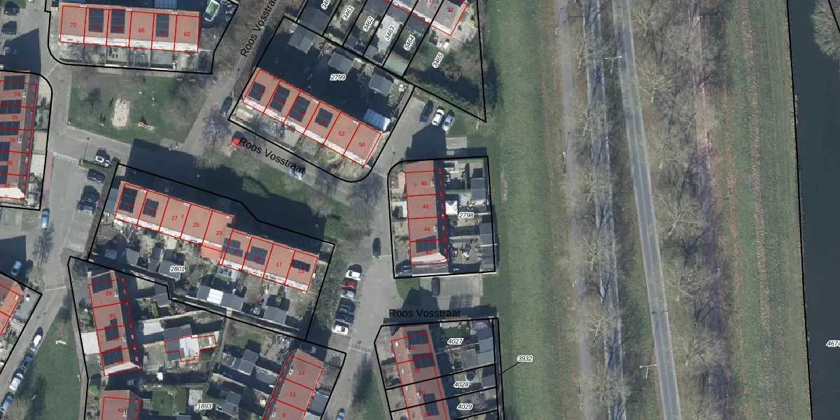 Roos Vosstraat 46 is gelegen op kadastraal perceel TIE00H2798. Deze kadastrale aanduiding is uniek en wordt gebruikt door het Kadaster om eigendomsrechten en andere zakelijke rechten vast te leggen. Het perceel maakt onderdeel uit van de kadastrale gemeente Tiel.