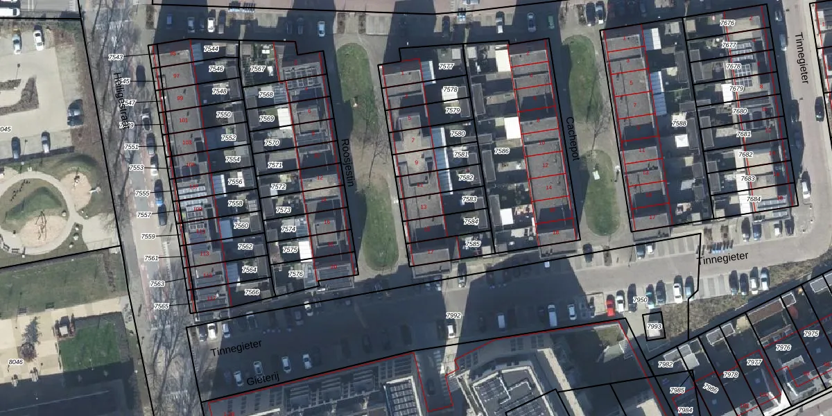 Gebruik de zoekbalk of klik op een perceel voor informatie over de adressen binnen dit perceel.