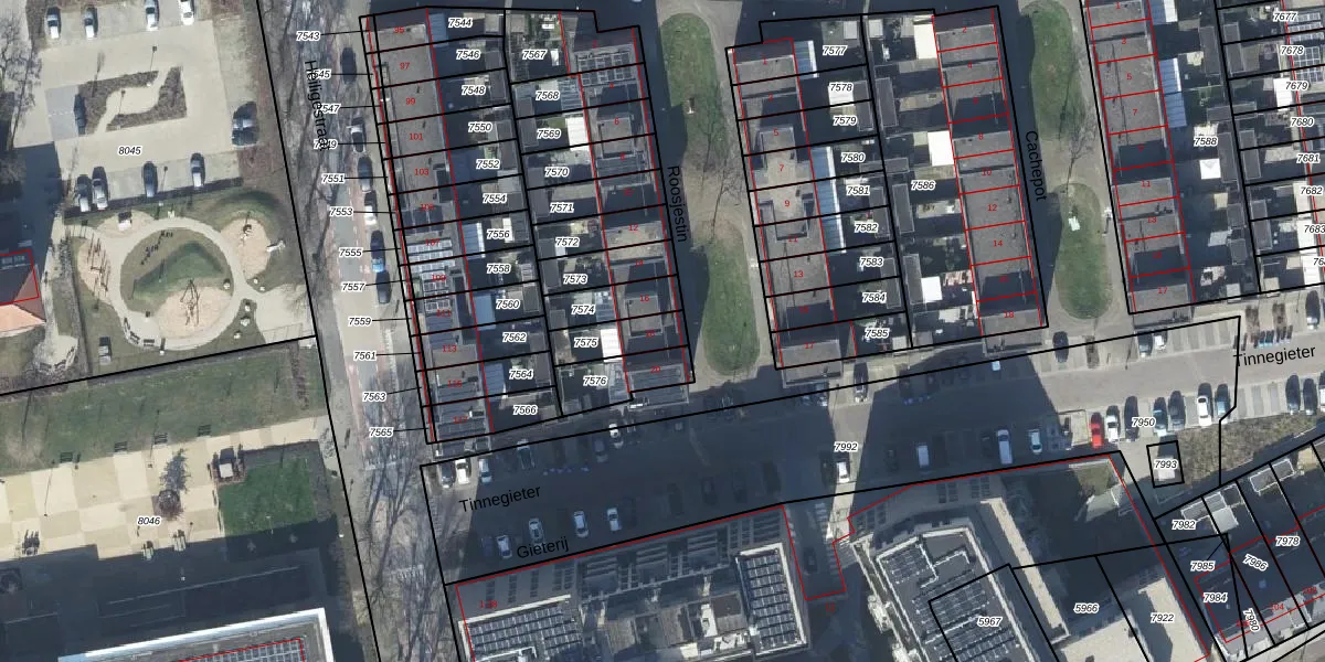 Gebruik de zoekbalk of klik op een perceel voor informatie over de adressen binnen dit perceel.