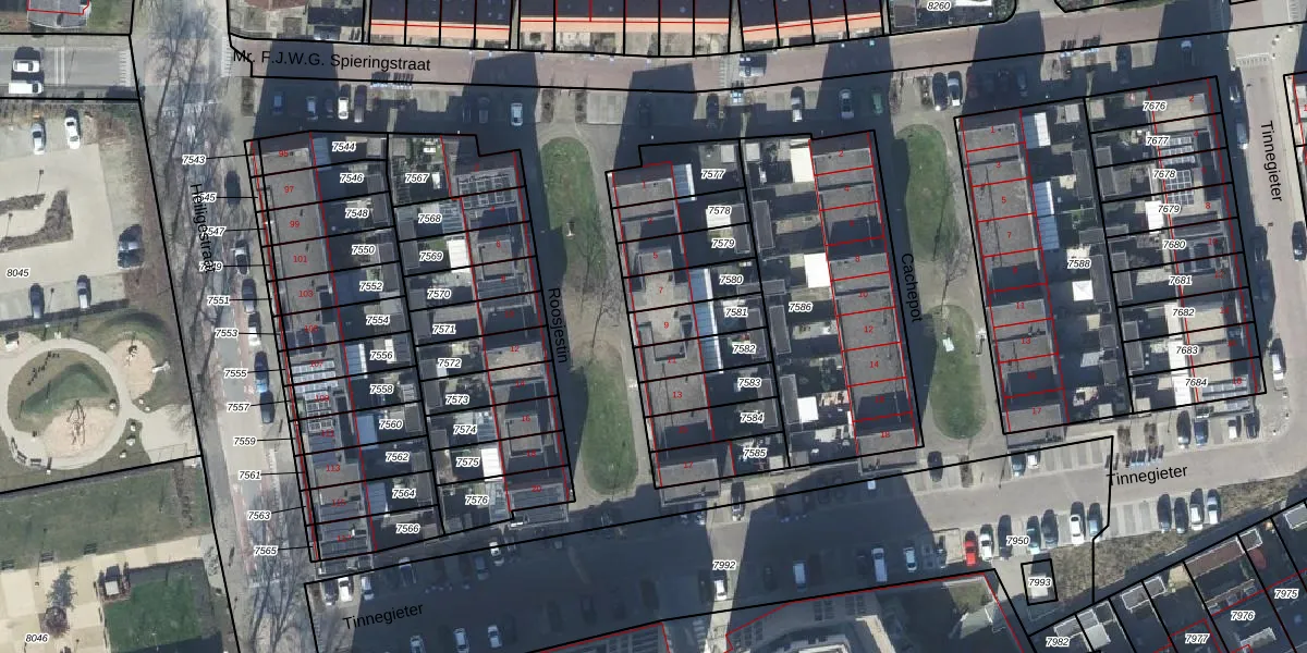 Roosjestin 9 is gelegen op kadastraal perceel TIE00D7581. Deze kadastrale aanduiding is uniek en wordt gebruikt door het Kadaster om eigendomsrechten en andere zakelijke rechten vast te leggen. Het perceel maakt onderdeel uit van de kadastrale gemeente Tiel.