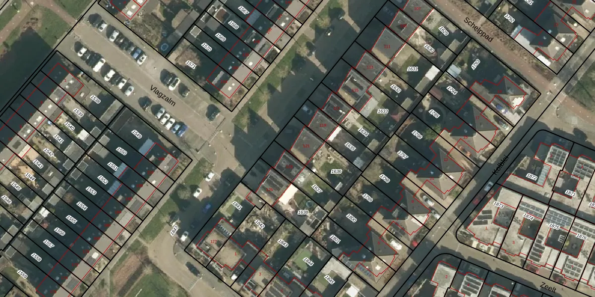 Het adres is gelegen op perceel 1636 in de sectie K en de kadastrale gemeente Tiel. De kadastrale aanduiding is aldus TIE00-K-1636. Het perceel is kleiner dan gemiddeld in Tiel. Het perceel is 316 m² groot, terwijl het gemiddelde ligt op 1546,7 m². Het grootste perceel in de kadastrale gemeente is 26,3 ha. Het kleinste perceel heeft een oppervlakte van 0 m². Dit is het enige adres dat aanwezig is op het perceel. In de Basisregistratie Kadaster (BRK) werden de grenzen van het perceel geregistreerd op 23-01-2003.