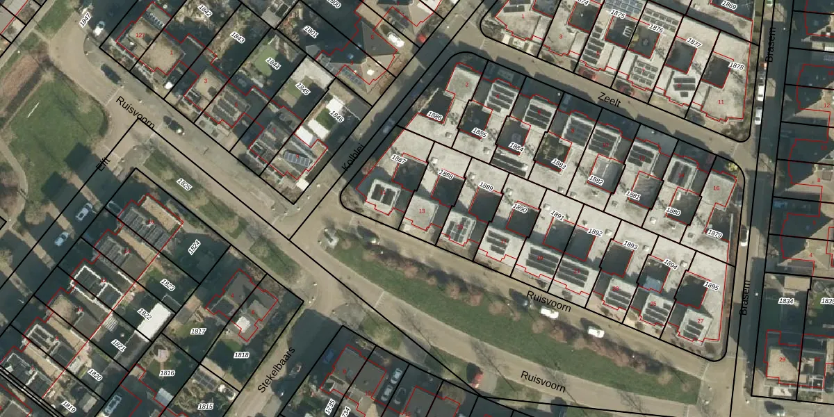 Het perceel waarop Ruisvoorn 13 staat heeft een oppervlakte van 224 m². Dit is een middelgroot perceel. De perceeloppervlakte wordt geregistreerd door het Kadaster. Gedetailleerde informatie over de maten van dit perceel kunt u vinden in het rapport Kadastrale kaart met maatvoering van Ruisvoorn 13.