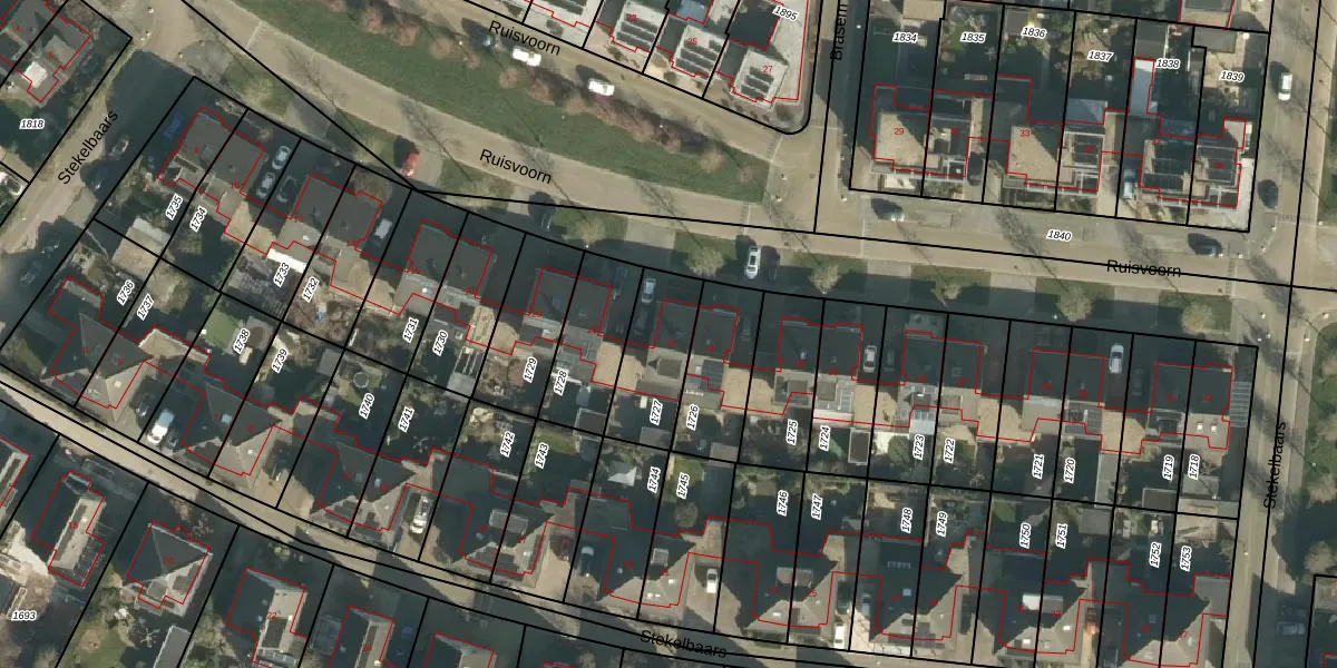 Het perceel waarop Ruisvoorn 24 staat heeft een oppervlakte van 254 m². Dit is een middelgroot perceel. De perceeloppervlakte wordt geregistreerd door het Kadaster. Gedetailleerde informatie over de maten van dit perceel kunt u vinden in het rapport Kadastrale kaart met maatvoering van Ruisvoorn 24.