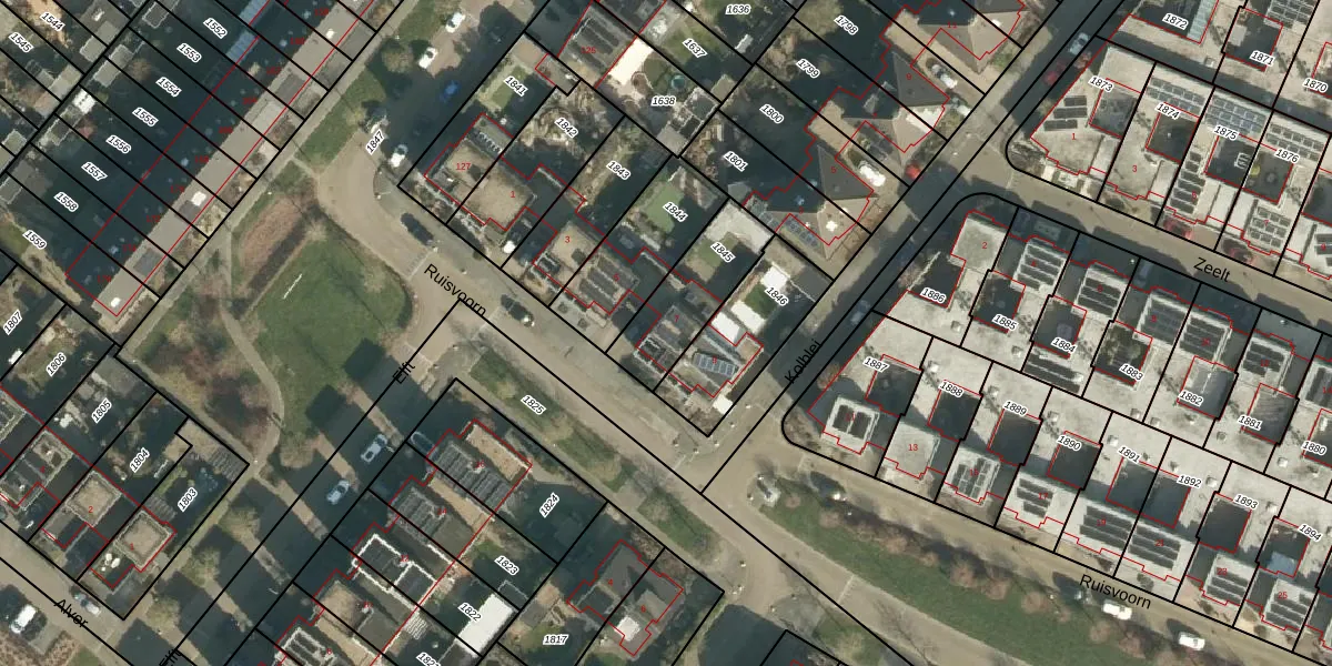 Ruisvoorn 7 is gelegen op kadastraal perceel TIE00K1845. Deze kadastrale aanduiding is uniek en wordt gebruikt door het Kadaster om eigendomsrechten en andere zakelijke rechten vast te leggen. Het perceel maakt onderdeel uit van de kadastrale gemeente Tiel.