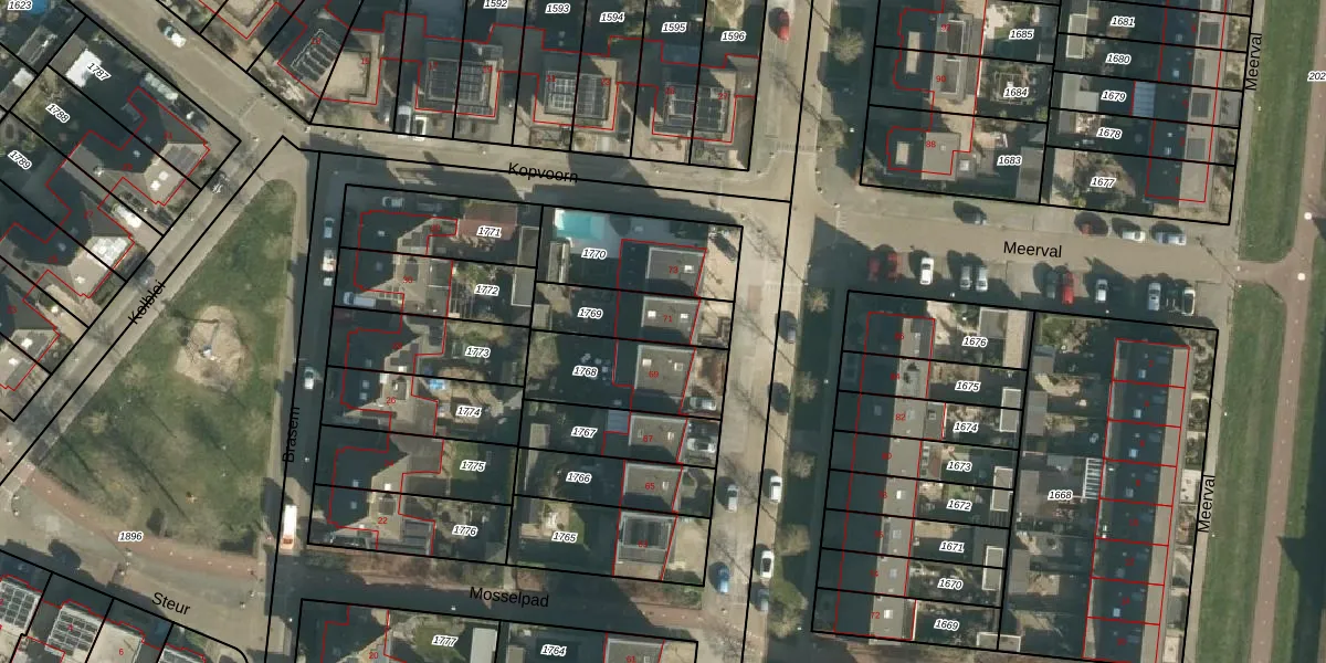 Het adres is gelegen op perceel 1769 in de sectie K en de kadastrale gemeente Tiel. De kadastrale aanduiding is aldus TIE00-K-1769. Het perceel is kleiner dan gemiddeld in Tiel. Het perceel is 222 m² groot, terwijl het gemiddelde ligt op 1546,7 m². De grootste perceeloppervlakte in de kadastrale gemeente is 26,3 ha. De kleinste oppervlakte bedraagt 0 m². Op het perceel bevinden zich geen andere adressen. In de Basisregistratie Kadaster (BRK) werden de grenzen van het perceel geregistreerd op 23-01-2003.
