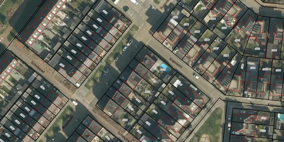Ruisvoorn 97 is gelegen op kadastraal perceel TIE00K1624. Deze kadastrale aanduiding is uniek en wordt gebruikt door het Kadaster om eigendomsrechten en andere zakelijke rechten vast te leggen. Het perceel maakt onderdeel uit van de kadastrale gemeente Tiel.