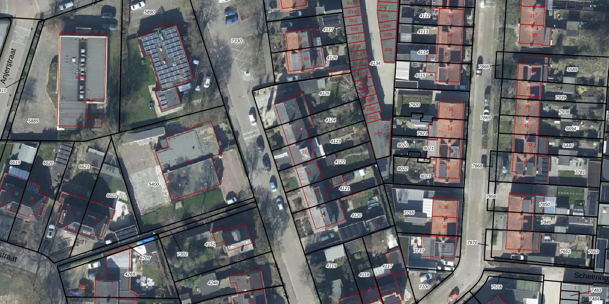 Gebruik de zoekbalk of klik op een perceel voor informatie over de adressen binnen dit perceel.