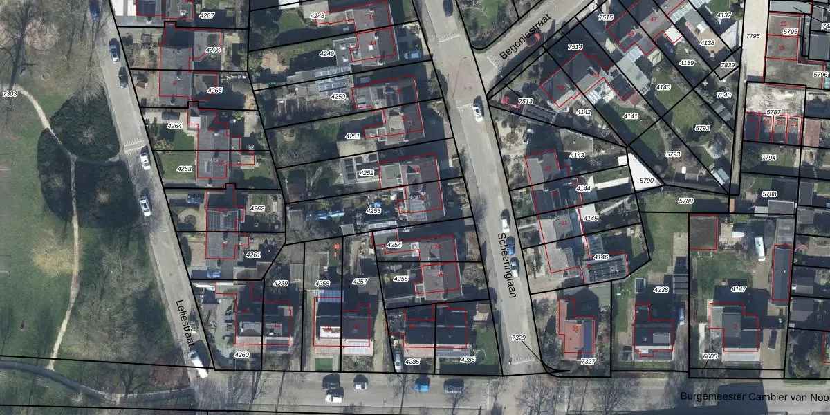 Gebruik de zoekbalk of klik op een perceel voor informatie over de adressen binnen dit perceel.