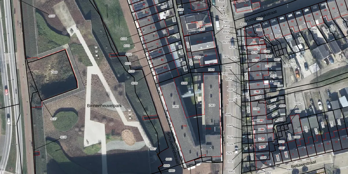 Schullenhofstraat 60 is gelegen op kadastraal perceel TIE00C7961. Deze kadastrale aanduiding is uniek en wordt gebruikt door het Kadaster om eigendomsrechten en andere zakelijke rechten vast te leggen. Het perceel maakt onderdeel uit van de kadastrale gemeente Tiel.
