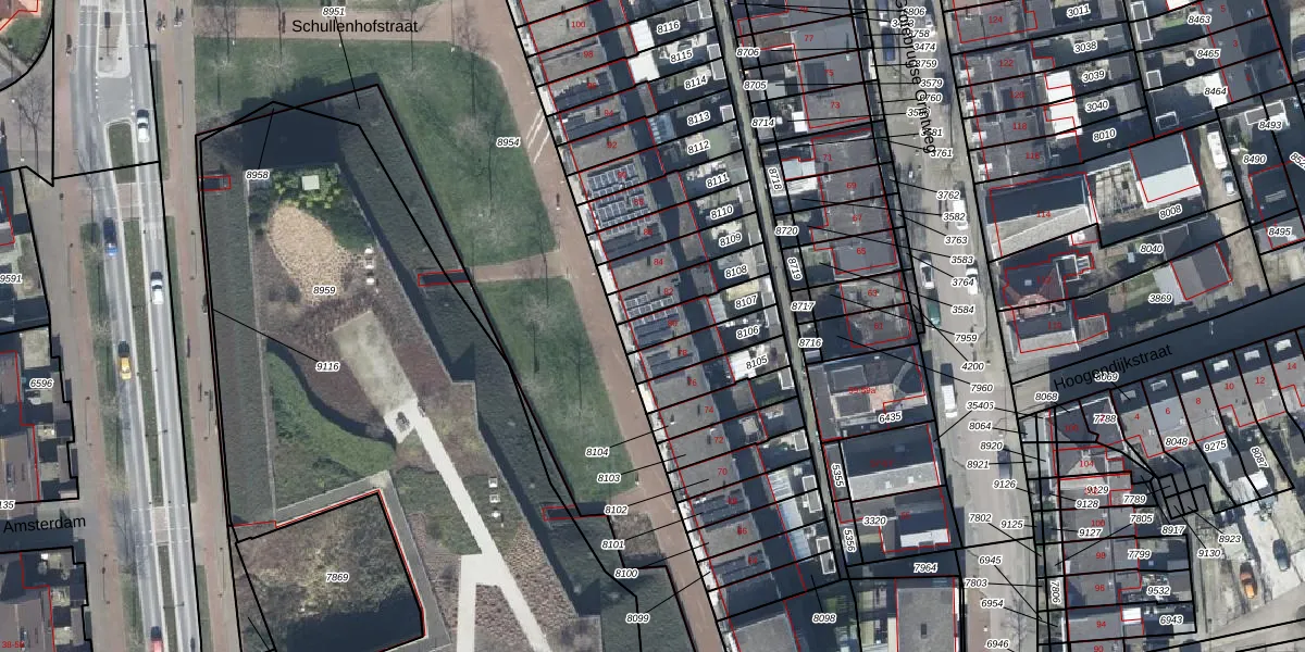 Het perceel waarop Schullenhofstraat 80 staat heeft een oppervlakte van 118 m². Dit is een middelgroot perceel. De perceeloppervlakte wordt geregistreerd door het Kadaster. Gedetailleerde informatie over de maten van dit perceel kunt u vinden in het rapport Kadastrale kaart met maatvoering van Schullenhofstraat 80.