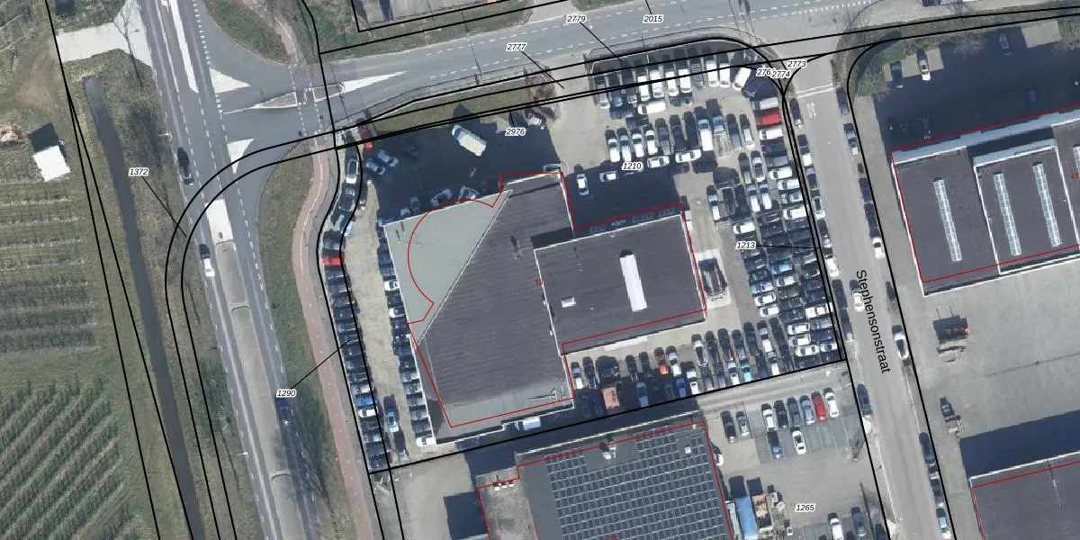 Het adres is gelegen op perceel 1210 in de sectie L en de kadastrale gemeente Tiel. De kadastrale aanduiding is aldus TIE00-L-1210. Het perceel is met 4990 m² relatief groot. Het gemiddelde ligt in de kadastrale gemeente Tiel op 1550,53 m². Het grootste perceel in de kadastrale gemeente is 26,3 ha. Het kleinste perceel heeft een oppervlakte van 0 m². Dit is het enige adres dat aanwezig is op het perceel. In de Basisregistratie Kadaster (BRK) werden de grenzen van het perceel geregistreerd op 20-10-2016.
